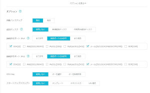 コントロールパネルからは全開放、全拒否、特定のポートのみの解放しか選択できませんが、せっかく仮想インフラ側で設定できるので とりあえずsshとメール関連のポートのみコントロールパネルのオプションで解放します。